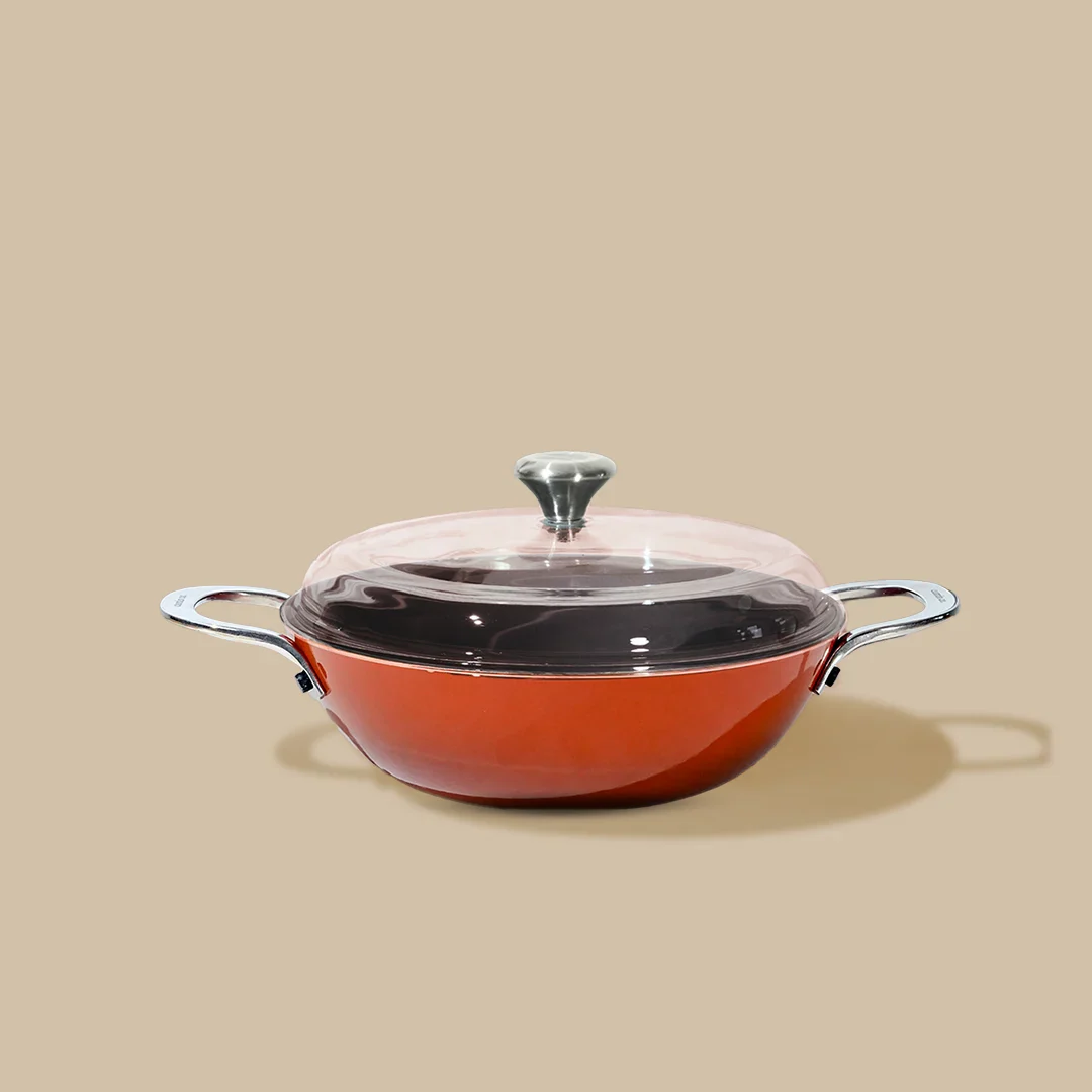 Thoughtfully crafted for the fast pace of modern Indian kitchens, this 24 cm, multifunctional Kadai brings effortless ease to everyday family cooking. Made from enamel cast iron that’s 60% lighter, it combines timeless durability with a patented titanium-infused enamel that’s 100% non-toxic, rust-resistant, and easy to clean that is built to cook beautifully, day after day.